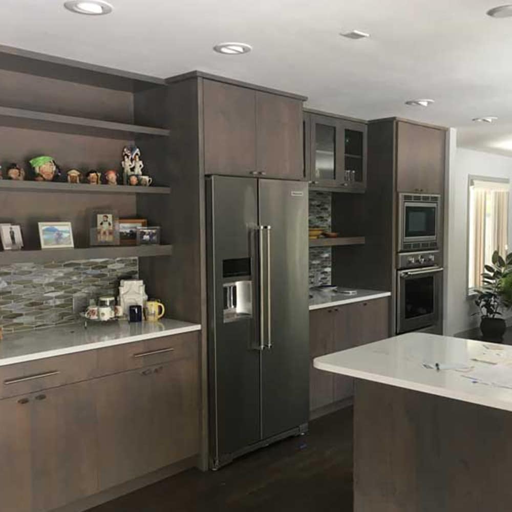 All our cabinets are built with 3/4-inch sides, 3/4-nailers, and 1/4-inch backs. Compare that with store-bought cabinets with 1/2-inch sides and nailers and 1/8-inch backs and you will see that our custom cabinetry will outlast cheaply built box store cabinets.